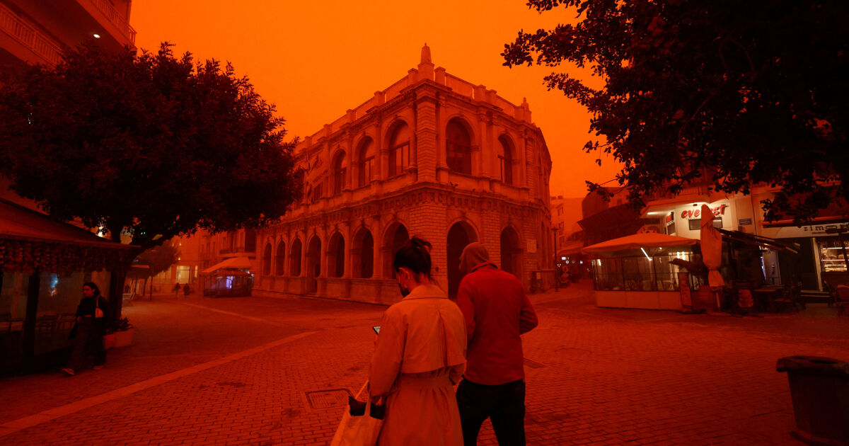 Силни южни ветрове донесоха на гръцкия остров Крит пясъчен прах от Сахара и пейзажът навсякъде стана червено-оранжев.