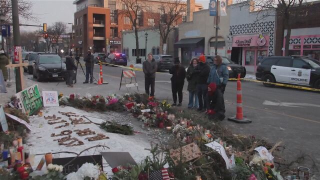 Цветя и свещи бяха поставени на мястото в Минеаполис, където Алекс Прети беше застрелян в събота.