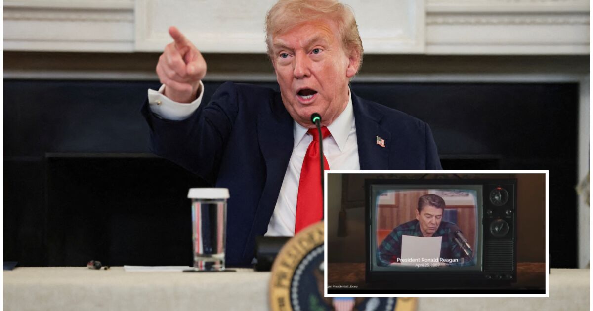 Рекламата, която доведе до новия търговски сблъсък, използва откъси от реч на бившия президент Роналд Рейгън от 1987 г., в която той предупреждава за негативните последици от високите мита.