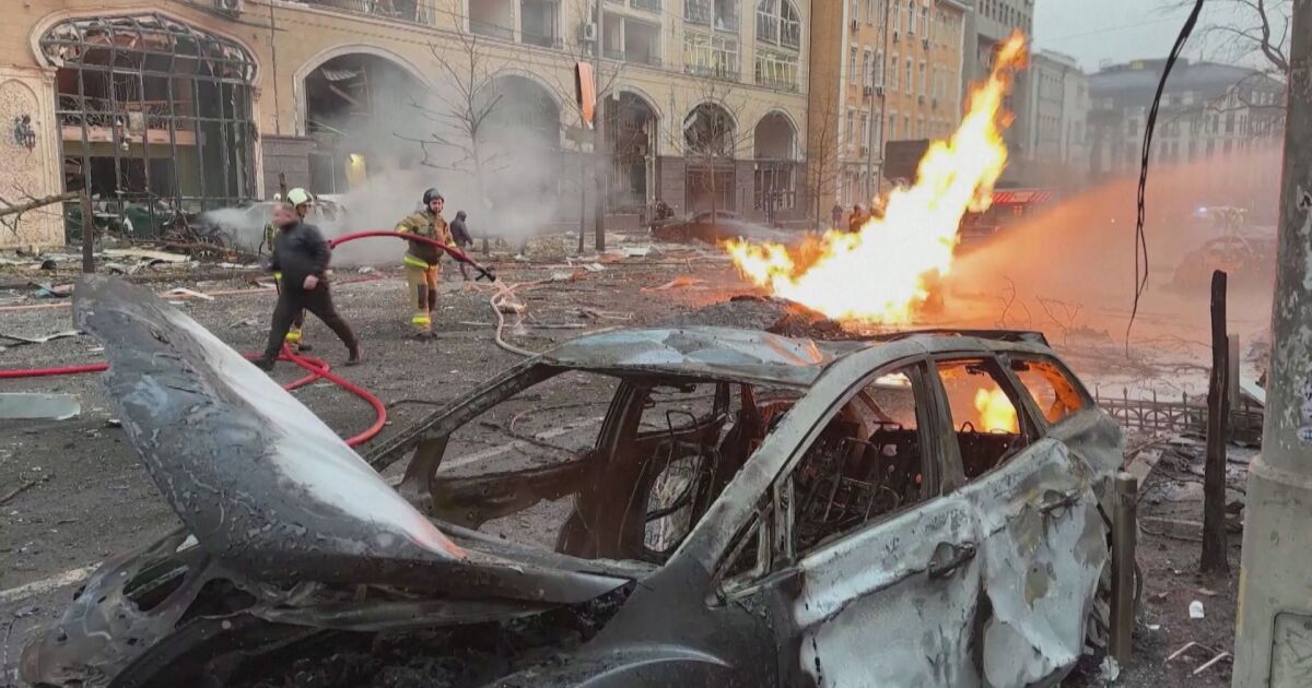 Атаката е извършена в сутрешния час пик и е довела до щети, включително пожари в множество сгради.