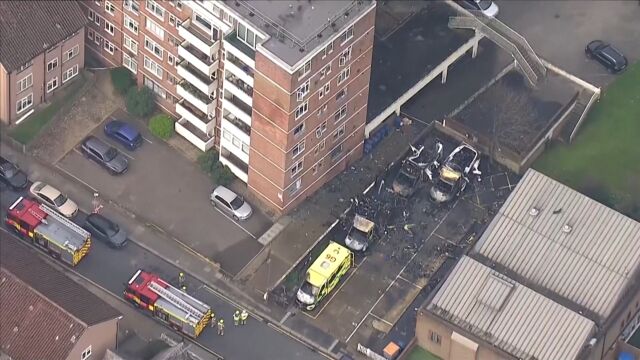 Лондонската пожарна бригада, която изпрати шест пожарни коли и 40 пожарникари на мястото, заяви, че множество бутилки на превозните средства са експлодирали, причинявайки счупване на прозорци в съседен жилищен блок.