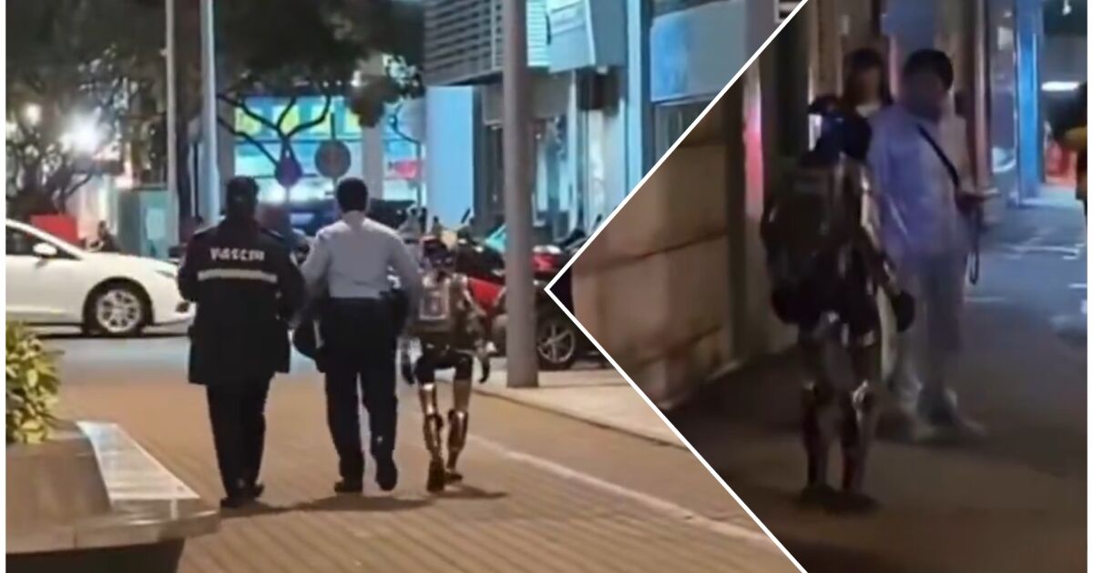 В кадрите се вижда, роботът вдига ръце - жест, който изглежда като извинение или опит за успокоение. По-късно видеото показва как двама полицаи отвеждат робота от мястото на инцидента. Един от служителите дори поставя ръка на рамото му, което придава на сцената почти комичен вид.