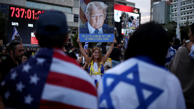 Израелци се събират в очакване на освобождаването на заложниците. С тях ще се срещне американският президент Доналд Тръмп, който ще бъде днес в Израел.