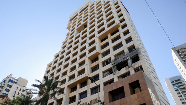 Видео, публикувано в социалните мрежи, показва пожар и дим, издигащ се от сградата на хотел „Рамада“ в центъра на Бейрут, който тази сутрин пострада при израелски удар.