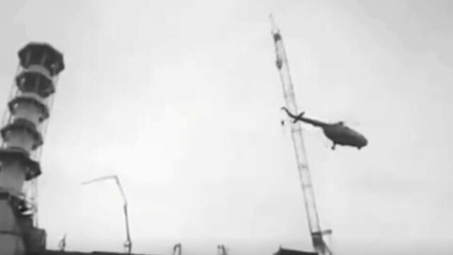 Преди четиридесет години на този ден камерите заснеха как хеликоптер Ми-8, натоварен със задачата да засипе с пясък и бор открито ядро на ядрен реактор, се удря в кабел на кран и се разбива в отломките на взривената централа.