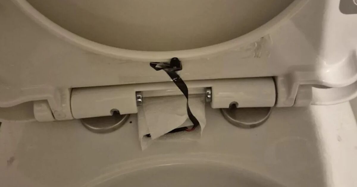Малка черна камера, увита в кухненска хартия, била инсталирана под белия капак на тоалетната чиния, като кабелът и батерията ѝ се виждали.