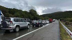 Има образувана километрична колона от тирове, които отбиват в аварийната лента